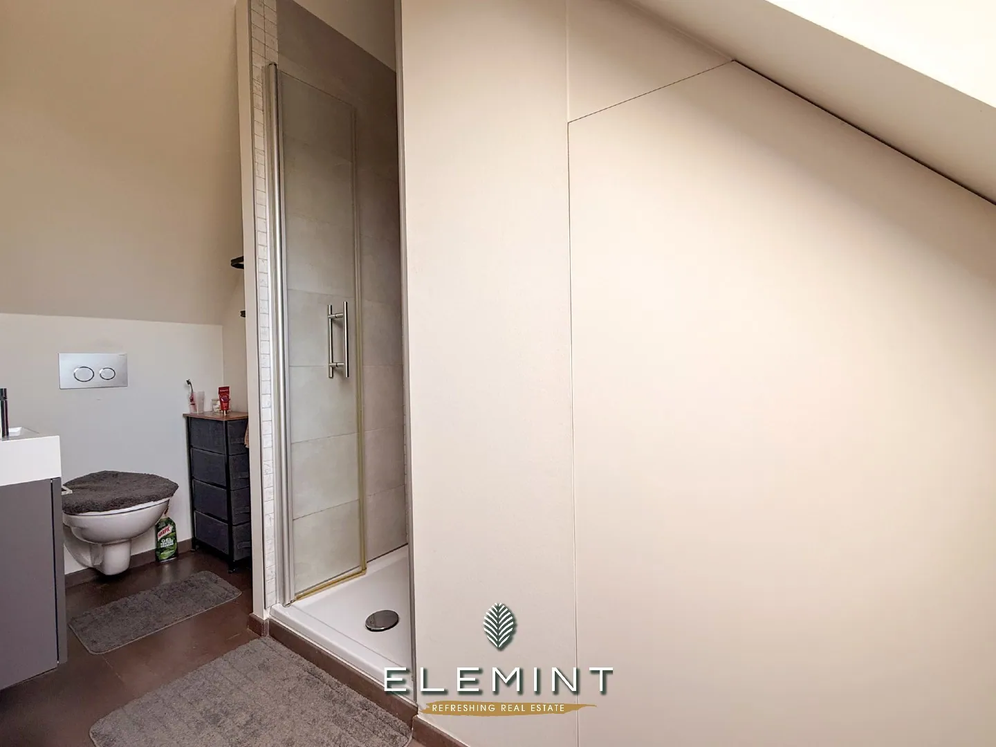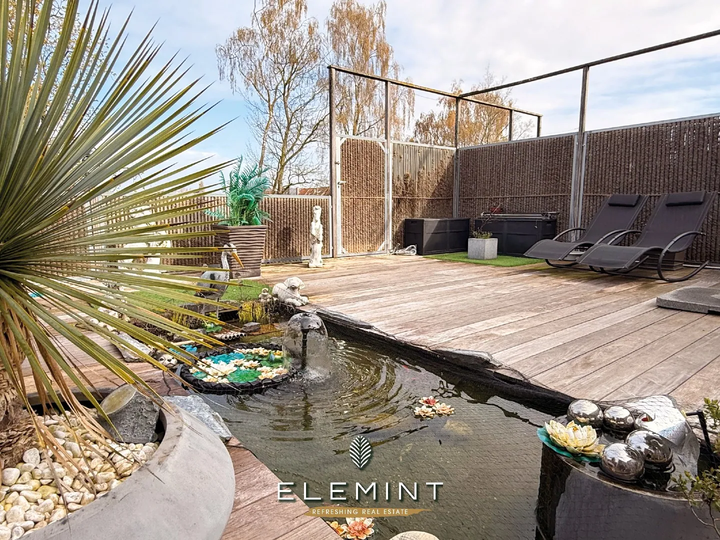 Uniek triplex-appartement met private inkom, 3 slpk, 2 badk & ruim terras met vijver (161 m²)
